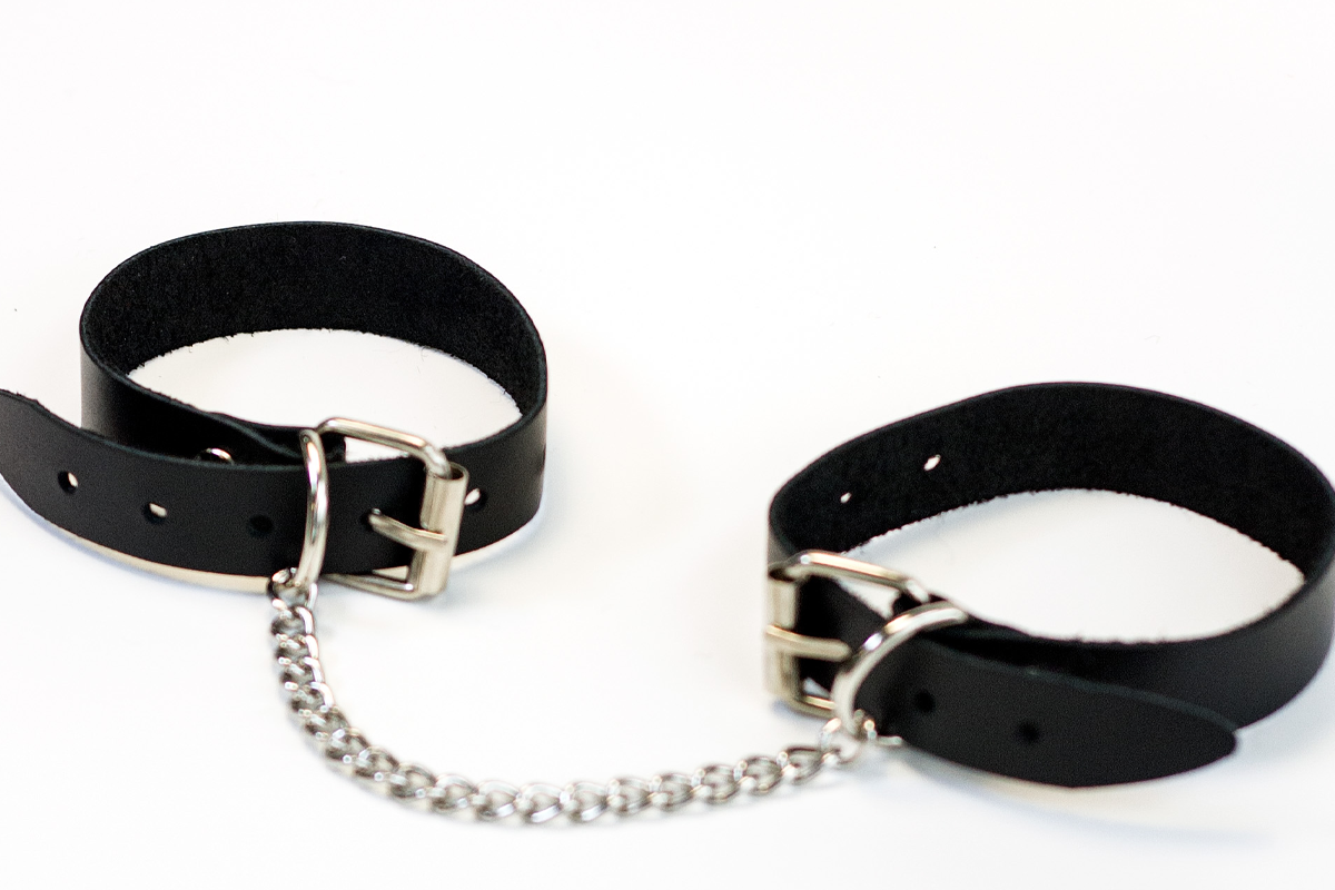 Наручники из ременной кожи с фурнитурой из латуни