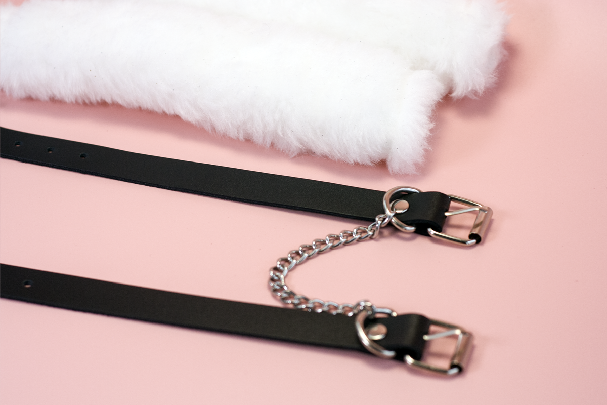 + модель 2 в 1, можно использовать с мехом для нежной фиксации, или снять мех и получить более брутальную версию.