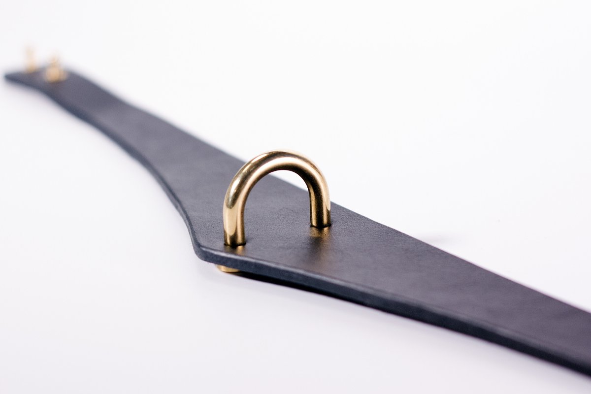 Ошейник из натуральной ременной плотной кожи, фурнитура изготовлена из латуни