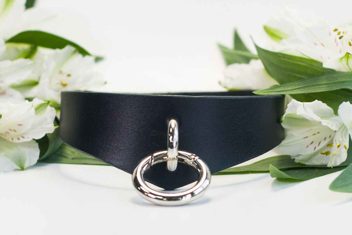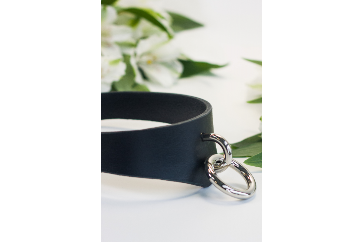 Чокер с кольцом. Базовая модель.Особенности:+ черная натуральная кожа (1.8-2мм), 1 слой+ никелирован..