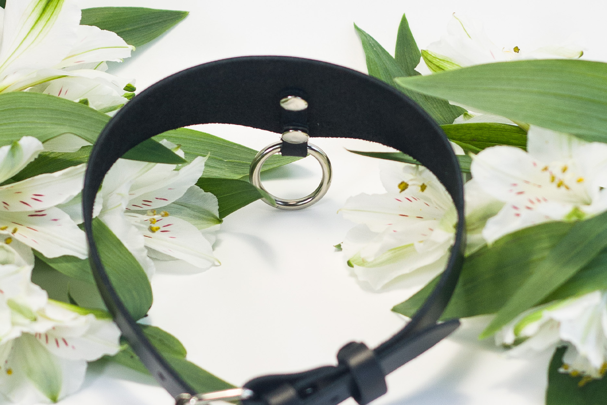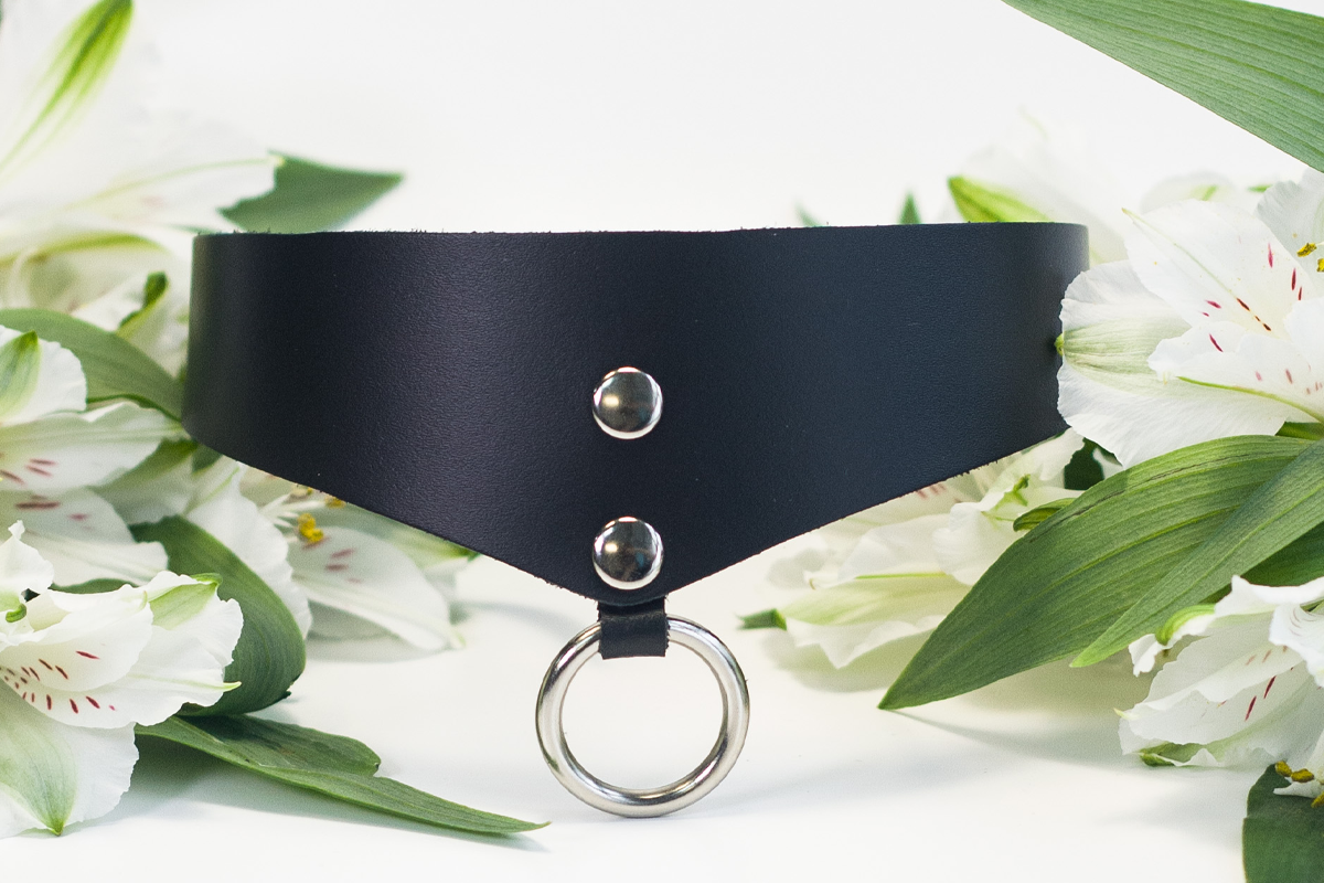 Чокер с кольцом. Базовая модель.Особенности:+ черная натуральная кожа (1.8-2мм), 1 слой+ никелирован..