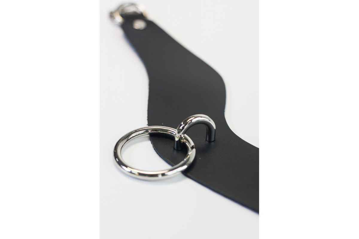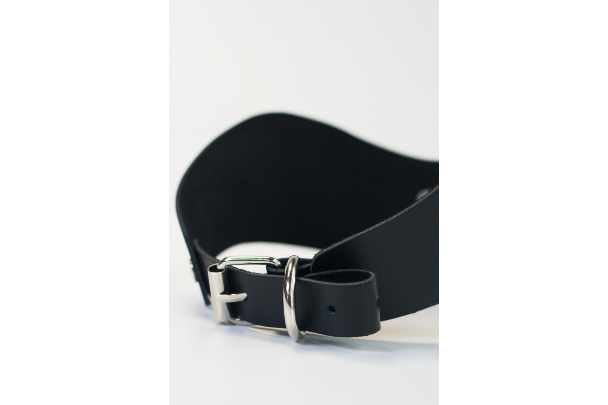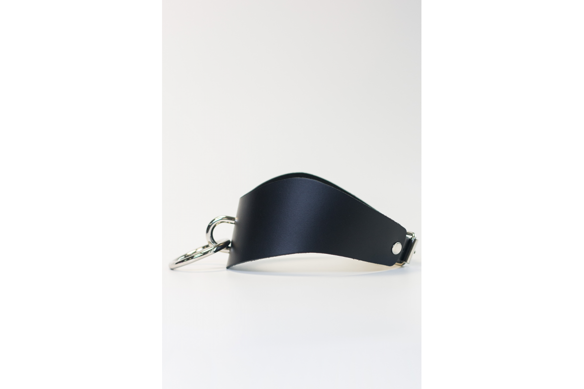 Ошейник для БДСМ и секса изготовлен из двух слоёв натуральной кожи и имеет четыре полукольца для кре..