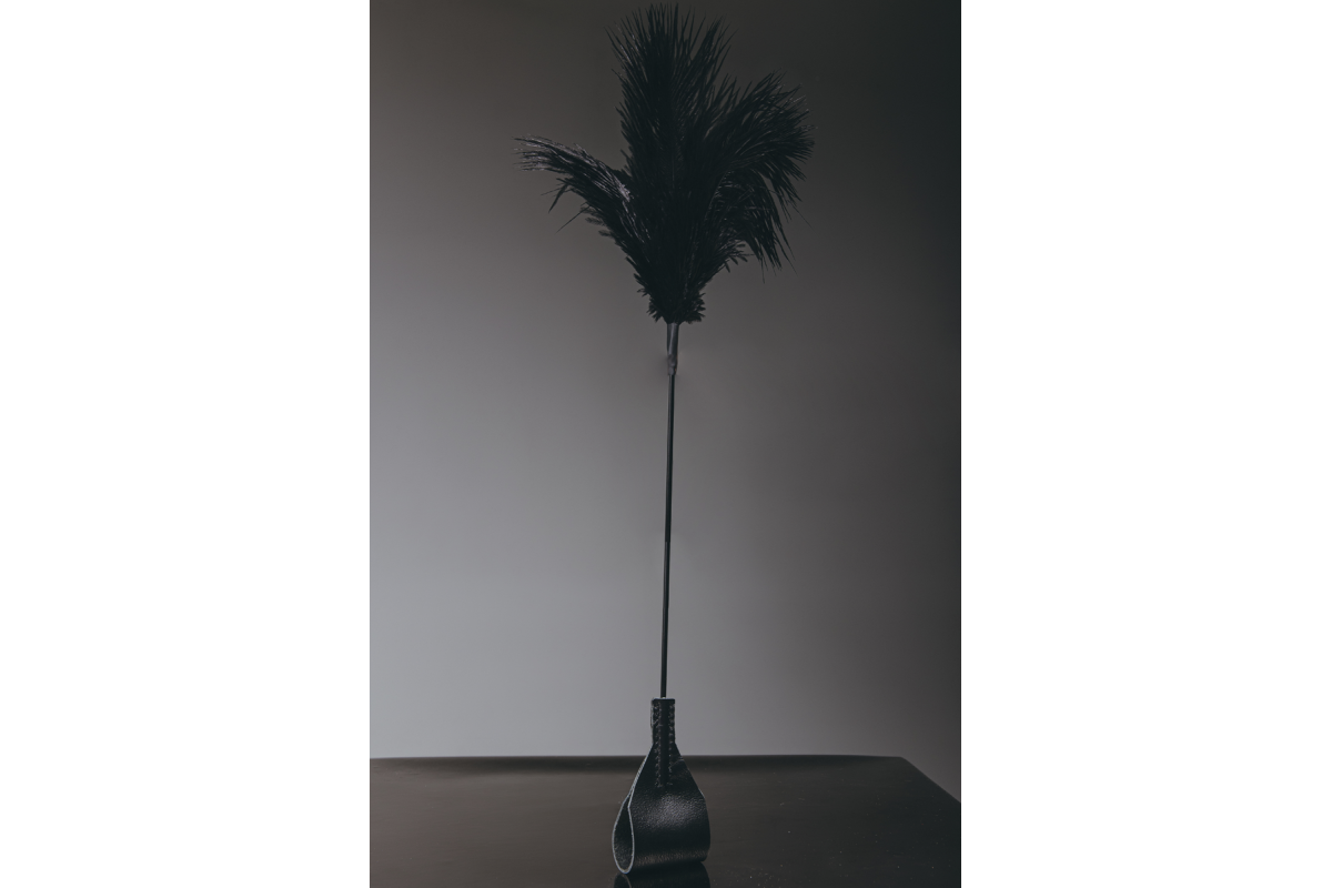 Щекоталка с натуральными перьями на одном краю прочного карбового прутка, и ударной частью стека на другом