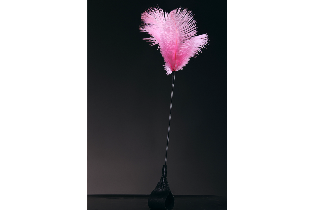 Щекоталка с натуральными перьями на одном краю прочного карбового прутка, и ударной частью стека на другом