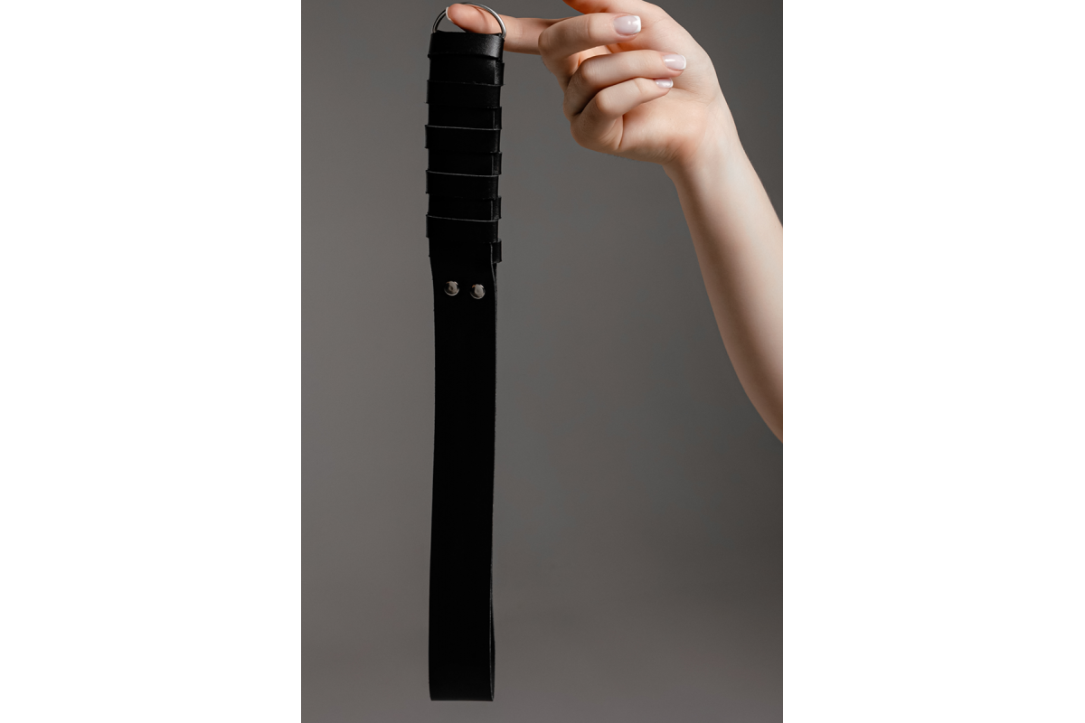 Спанкер из толстой ремённой кожи, удобно ложится в руку, кожа ощущается тяжелой и крепкой. Особ..
